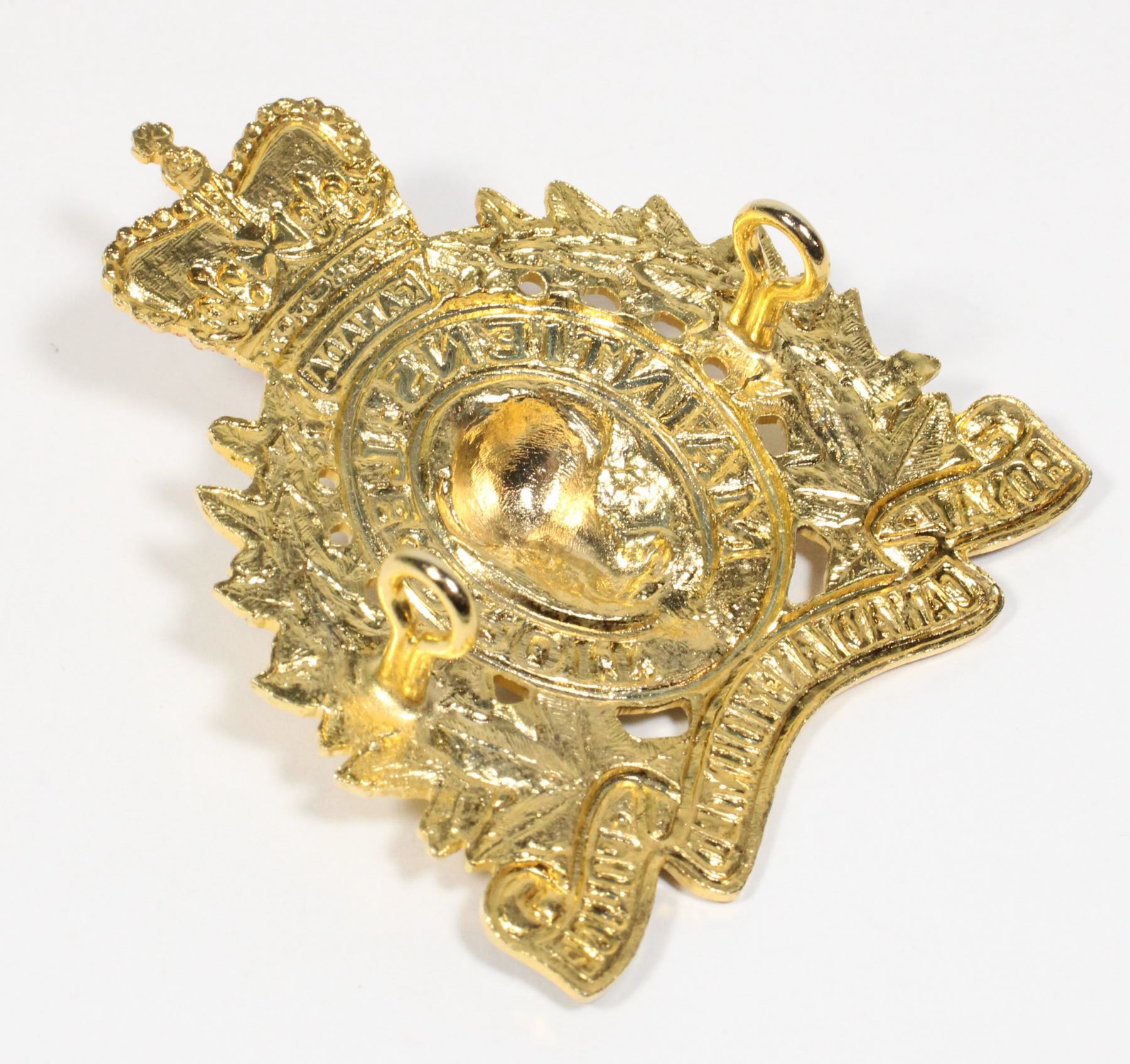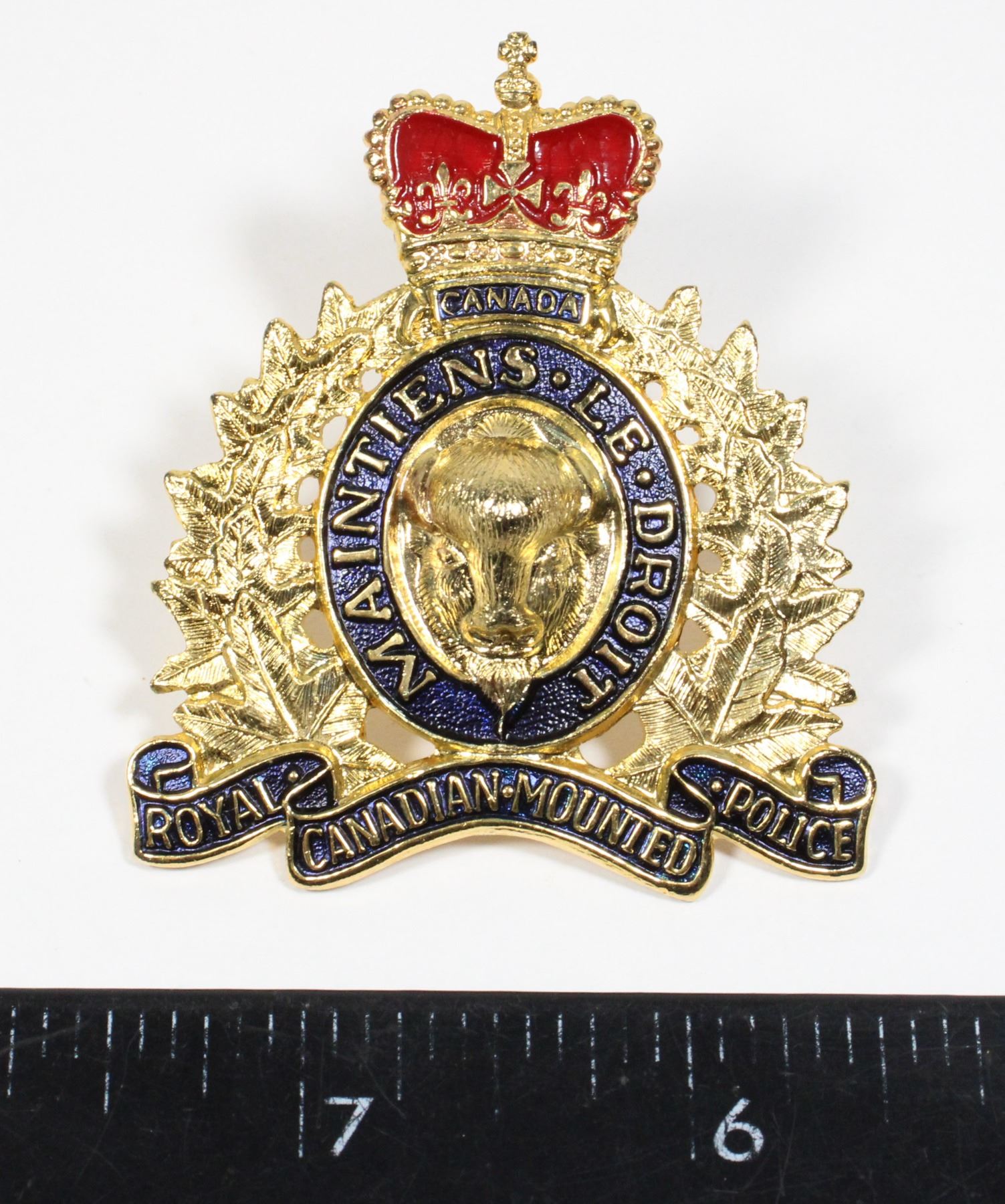 VARIATION QUEEN ELIZABETH II RCMP ROYAL CANADIAN MOUNTED POLICE CAP BADGE WITH LUGS - CANADIAN LAW ENFORCEMENT INSIGNIA