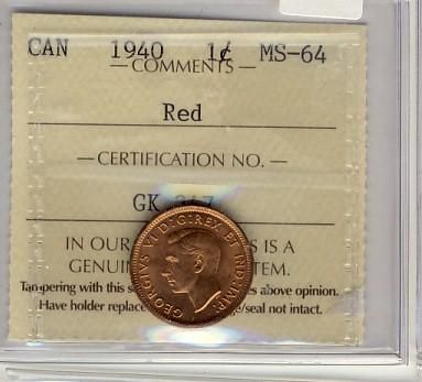 1940 1¢ ICCS MS64RD.
