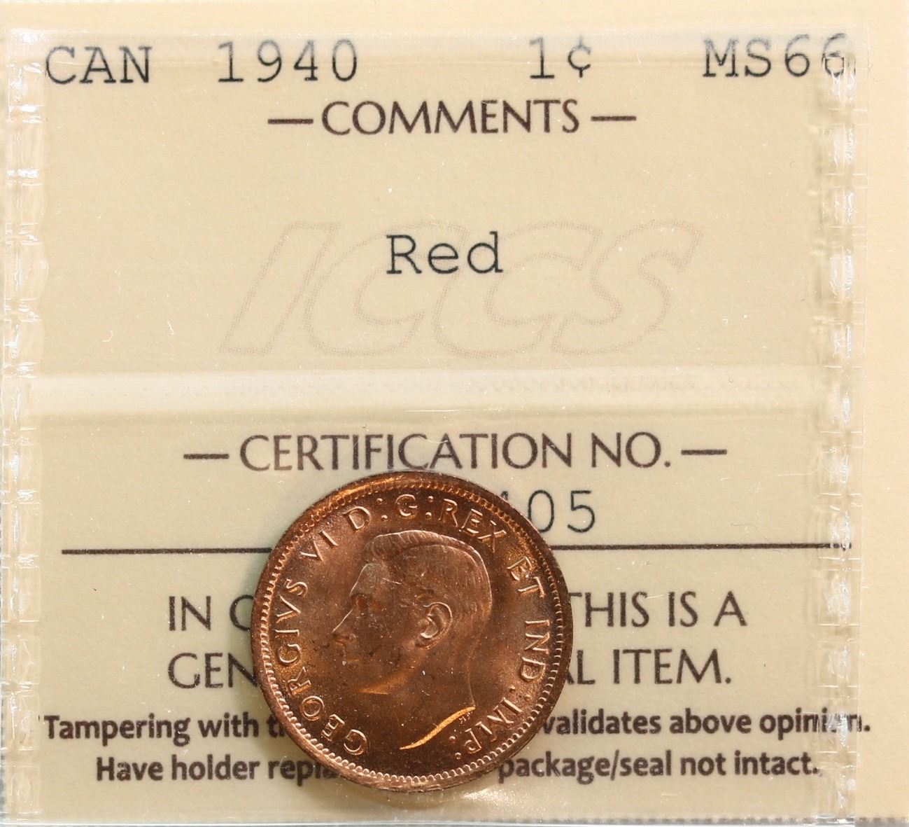 1940 1¢ ICCS Superb Gem Mint State-66 Full red