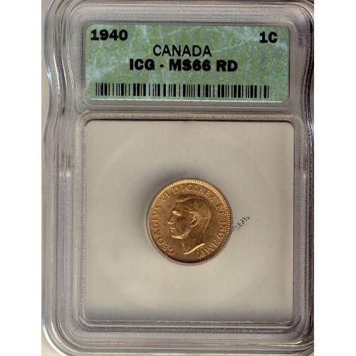1940 1¢ ICG MS66 Full Red. Wow! An amazing "George VI" Small cent. Excellent strike with clean fields and great surfaces.