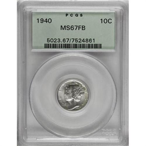 <B>1940 10C MS67 Full Bands PCGS.</B></I> PCGS Population (285/15). NGC Census: (294/5). Mintage: 65,361,828. Numismedia Wsl. Price for NGC/PCGS coin in MS67: $184. (#5023)<BR><BR><B>Coin Engraver:</B> Adolph A. Weinman<BR><BR><b>Shipping:</b> Coins & Currency (<a target="_blank" href="http://www.heritageauctions.com/common/shipping.php">view shipping information</a>)