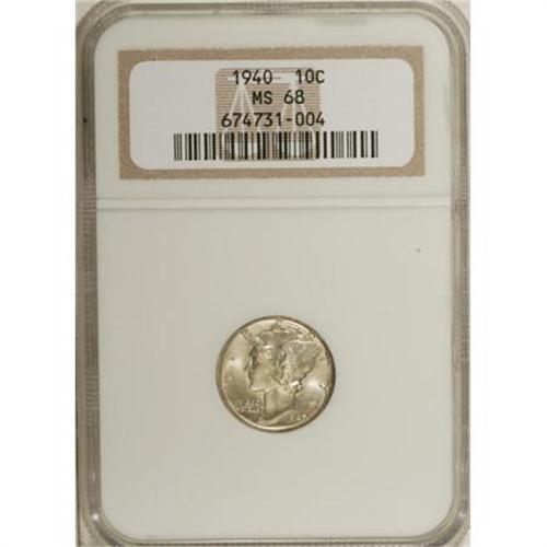 <B>1940 10C MS68 NGC.</B></I> NGC Census: (12/0). PCGS Population (6/0). Mintage: 65,361,828. (#5022)<BR><BR><b>Shipping:</b> Coins & Currency (<a target="_blank" href="http://www.heritageauctions.com/common/shipping.php">view shipping information</a>)
