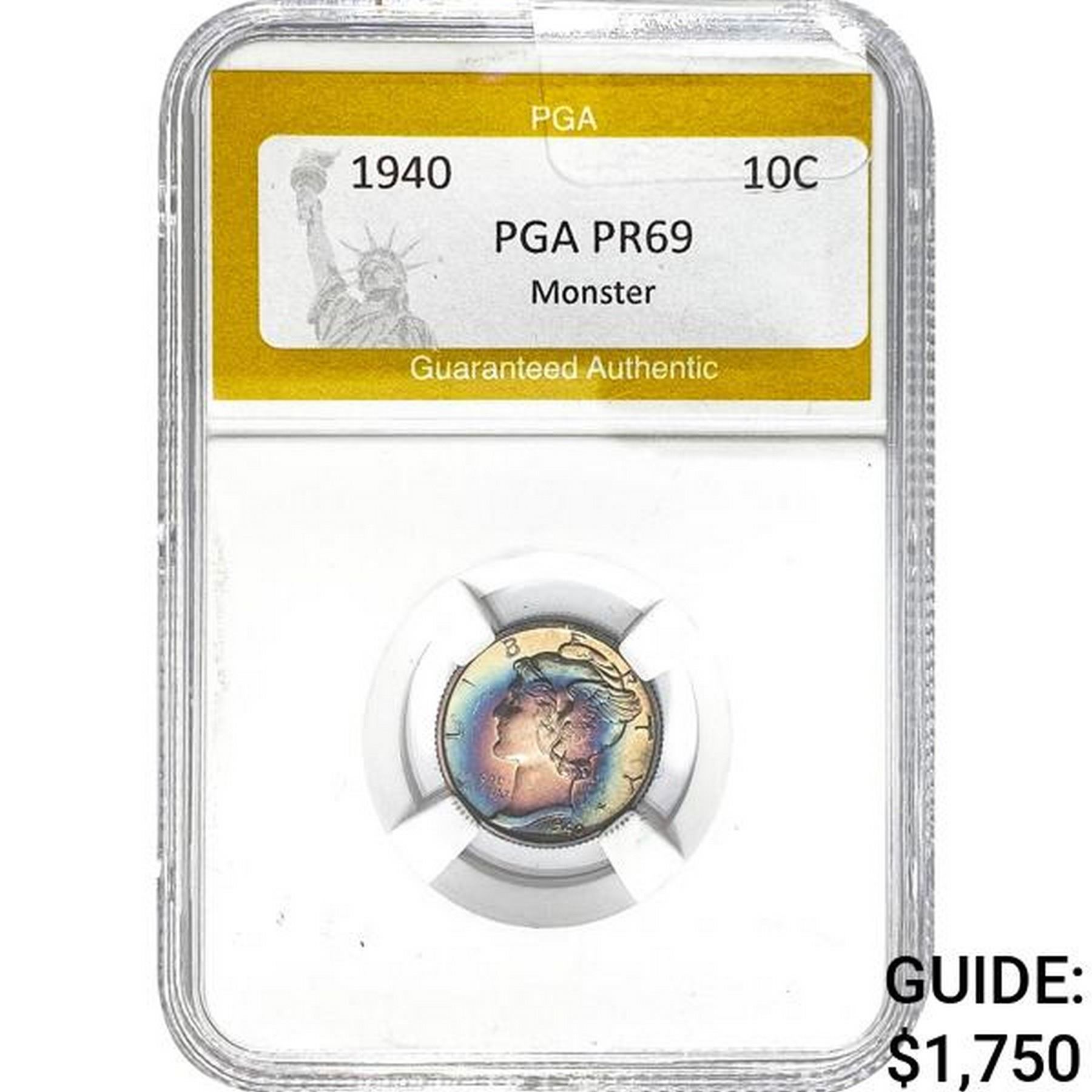 1940 10C Mercury Dime PGA PR69