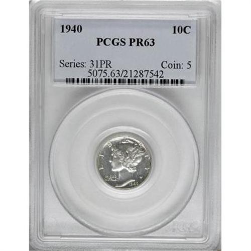 <B>1940 10C PR63 PCGS.</B></I> PCGS Population (116/2638). NGC Census: (50/1820). Mintage: 11,827. Numismedia Wsl. Price for NGC/PCGS coin in PR63: $140. (#5075)<BR><BR><B>Coin Engraver:</B> Adolph A. Weinman<BR><BR><b>Shipping:</b> Coins & Currency (<a target="_blank" href="http://www.heritageauctions.com/common/shipping.php">view shipping information</a>)