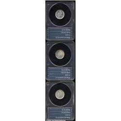 <table><tbody><tr><td><table> <TR><TD width="100%"><TABLE cellSpacing=1 cellPadding=3 width="100%" border=0><TBODY><TR><TD width="100%" bgColor=#79735c><FONT face=arial color=#ffffff size=3><B>Description</B> </FONT></TD></TR><TR><TD width="100%" bgColor=#ffffff><FONT face=arial size=2><B>1940 10C PR64 PCGS,</B></I> well struck and lightly toned, impressive for the grade; <B>1941 PR64 PCGS,</B></I> golden-brown peripheral patina, boldly struck and attractive; and a <B>1942 PR64 PCGS,</B></I> lightly toned and sharply struck. All three coins are in first generation PCGS holders. (3 coins) </FONT></TD></TR></TBODY></TABLE></TD></TR></TBODY></TABLE><BR><A name=PricesRealized></A><TABLE cellSpacing=0 cellPadding=0 width="100%" bgColor=#000000 border=0><TBODY><TR><TD width="100%"><TABLE cellSpacing=1 cellPadding=3 width="100%" border=0><TBODY><TR><TD width="100%" bgColor=#79735c><A name=PR><FONT face=arial color=#ffffff size=3><B>Previous Prices from Heritage Auctions</B> </FONT></A></TD></TR><TR><TD bgColor=#f6f6ed><TABLE cellSpacing=0 cellPadding=0 width="100%" border=1><TBODY><TR><TD align=middle width="33%"><B>Date</B></TD><TD align=middle width="33%"><B>Service</B></TD><TD align=middle width="33%"><B>Price</B></TD></TR><TR bgColor=whitesmoke><TD width="33%"><B>12/09/2003</B></TD><TD width="33%">PCGS</TD><TD width="33%">$212.75</TD></TR><TR bgColor=whitesmoke><TD width="33%"><B>09/11/2001</B></TD><TD width="33%">NGC</TD><TD width="33%">$136.00</TD></TR><TR bgColor=whitesmoke><TD width="33%"><B>04/10/2001</B></TD><TD width="33%">PCGS</TD><TD width="33%">$120.00</TD></TR><TR bgColor=whitesmoke><TD width="33%"><B>07/30/2002</B></TD><TD width="33%">NGC</TD><TD width="33%">$195.50</TD></TR><TR bgColor=whitesmoke><TD width="33%"><B>06/07/1997</B></TD><TD width="33%">PCGS</TD><TD width="33%">$110.00</TD></TR></TBODY></TABLE></TD></TR><TR><TD bgColor=#ffffff><FONT face=arial size=1 ?>PLEASE NOTE: All prices realized reflect the final hammer price PLUS the buyer's premium in auctions that charge a buyer's premium. Each item has a notation at the top of the listing indicating whether that lot included a buyer's premium. Example: A item that sells with a final hammer price of $100 and a 20% buyer's premium will display with a price realized of $120. All information listed is intended to be as accurate as possible, but errors are possible. Please use this guide carefully and inform us of any inaccuracies. </FONT></TD></TR></TBODY></TABLE></TD></TR></TBODY></TABLE><BR><TABLE cellSpacing=0 cellPadding=0 width="100%" bgColor=#000000 border=0><TBODY><TR><TD width="100%"><TABLE cellSpacing=1 cellPadding=3 width="100%" border=0><TBODY><TR><TD width="100%" bgColor=#79735c colSpan=6><FONT face=arial color=#ffffff size=3><B>Price Guide*</B> </FONT></TD></TR><TR bgColor=#f6f6ed><TD align=middle><B>Grade</B> </TD><TD align=middle><B>Coin World<BR>(Trends)</B> </TD><TD align=middle><B>Numismedia<BR>Retail</B> </TD><TD align=middle><B>Numismedia<BR>Wholesale</B> </TD><TD align=middle><B>Coin<BR>Universe</B> </TD><TD align=middle><B>Heritage<BR>Value Index</B> </TD></TR><TR><TD colSpan=6>No Pricing Data Available</TD></TR><TR bgColor=#ffffff><TD colSpan=6><FONT size=1>*All information listed is intended to be as accurate as possible, but errors are possible. No item may be returned or refused based on this information which is provided as a service to our customers. You should contact each pricing source directly to determine the accuracy of this information. </FONT></TD></TR></TBODY></TABLE></TD></TR></TBODY></TABLE><BR><TABLE cellSpacing=0 cellPadding=0 width="100%" bgColor=#000000 border=0><TBODY><TR><TD width="100%"><TABLE cellSpacing=1 cellPadding=3 width="100%" border=0><TBODY><TR><TD width="100%" bgColor=#79735c><FONT face=arial color=#ffffff size=3><B>Population Guide</B> </FONT></TD></TR><TR bgColor=#ffffff><TD align=middle><!-- Begin Output of Population Grid--><TABLE cellSpacing=0 cellPadding=0 width="100%" border=0><TBODY><TR><TD vAlign=center><TABLE cellSpacing=0 width="100%" border=1 cellsadding="3"><TBODY><TR><TD vAlign=center><TABLE cellSpacing=0 cellPadding=3 width="100%" border=1><TBODY><TR><TD vAlign=center align=middle bgColor=#f0f1e8 colSpan=2 <CENTER><FONT face=Arial size=2><B>PCGS Pop </B></FONT><CENTER></CENTER></TD><TD vAlign=center align=middle bgColor=#f0f1e8 colSpan=2><CENTER><FONT face=Arial size=2><B>NGC Pop</B></CENTER></FONT></TD></TR><TR><TD vAlign=center><FONT face=Arial size=2>(64)</FONT> </TD><TD vAlign=center align=right><FONT face=Arial size=2>540</FONT> </TD><TD vAlign=center><FONT face=Arial size=2>(64)</FONT> </TD><TD vAlign=center align=right><FONT face=Arial size=2>202</FONT> </TD></TR><TR><TD vAlign=center><FONT face=Arial size=2>(>64)</FONT> </TD><TD vAlign=center align=right><FONT face=Arial size=2>1913</FONT> </TD><TD vAlign=center><FONT face=Arial size=2>(>64)</FONT> </TD><TD vAlign=center align=right><FONT face=Arial size=2>1247</FONT> </TD></TR></TBODY></TABLE></TD></TR></TBODY></TABLE></TD></TR></TBODY></TABLE><!-- End Output of Population Grid--></TD></TR></TBODY></TABLE></TD></TR></TBODY></TABLE><BR><TABLE cellSpacing=0 cellPadding=0 width="100%" bgColor=#000000 border=0><TBODY><TR> 3 coins<font color='#000000'><span style='background-color: #FFFFFF'><td bgcolor='#FFFFFE'> Important notice: Heritage usually auctions material at the rate of 200-250 lots per hour. On some occasions eBay Live bid software or the Internet may not be able to keep up with the pace of the auction. We recommend placing a realistic absentee bid now as insurance to avoid disappointment. Occasionally the auctioneer may eliminate or reject an eBay Live bid, and the auctioneer may also reopen a lot after the close of the eBay live bidding (usually because we missed an audience bid), and may reject your bid even if it shows you as the winning bidder. By bidding via eBay Live, you agree that Heritage may award the lot to another bidder at its sole discretion under the circumstances described a
