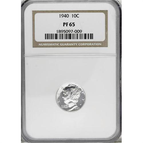 <B>1940 10C PR65 NGC.</B></I> NGC Census: (447/1126). PCGS Population (934/1134). Mintage: 11,827. Numismedia Wsl. Price for NGC/PCGS coin in PR65: $272. (#5075)<BR><BR><B>Coin Engraver:</B> Adolph A. Weinman<BR><BR><b>Shipping:</b> Coins & Currency (<a target="_blank" href="http://www.heritageauctions.com/common/shipping.php">view shipping information</a>)