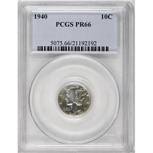 <B>1940 10C PR66 PCGS.</B></I> PCGS Population (833/313). NGC Census: (794/339). Mintage: 11,827. Numismedia Wsl. Price for NGC/PCGS coin in PR66: $320. (#5075)<BR><BR><B>Coin Engraver:</B> Adolph A. Weinman<BR><BR><b>Shipping:</b> Coins & Currency (<a target="_blank" href="http://www.heritageauctions.com/common/shipping.php">view shipping information</a>)