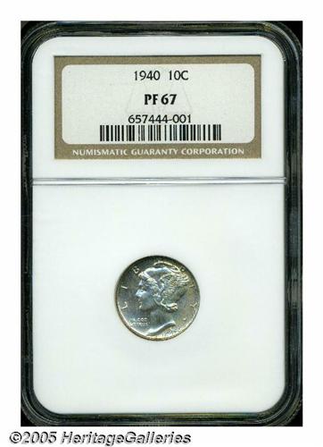 <B>1940<10C> PR67 NGC.</B></I> Light streaks of walnut-brown color embrace this flashy and exquisitely struck Superb Gem. The preservation is flawless, aside from a faint spot above the W in WE.