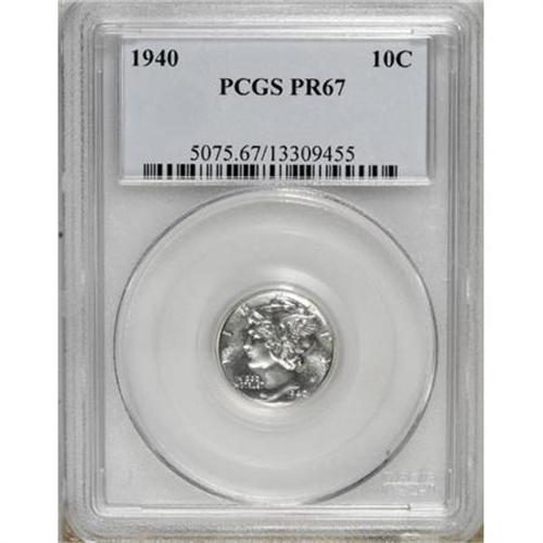 <B>1940 10C PR67 PCGS.</B></I> . PCGS Population (294/18). NGC Census: (299/36). Mintage: 11,827. Numismedia Wsl. Price for NGC/PCGS coin in PR67: $480. (#5075)<BR><BR><B>Coin Engraver:</B> Adolph A. Weinman<BR><BR><b>Shipping:</b> Coins & Currency (<a target="_blank" href="http://www.heritageauctions.com/common/shipping.php">view shipping information</a>)