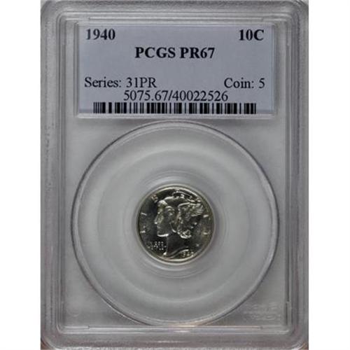 <B>1940 10C PR67 PCGS.</B></I> PCGS Population (295/18). NGC Census: (299/37). Mintage: 11,827. Numismedia Wsl. Price for NGC/PCGS coin in PR67: $480. (#5075)<BR><BR><B>Coin Engraver:</B> Adolph A. Weinman<BR><BR><b>Shipping:</b> Coins & Currency (<a target="_blank" href="http://www.heritageauctions.com/common/shipping.php">view shipping information</a>)