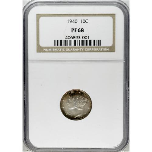 <B>1940 10C PR68 NGC.</B></I> Moderately reflective beneath hazy gray patina that dominates the centers. The strike is crisp, and flecks of crimson and gold grace the exquisitely preserved peripheral zones. Census: 30 in 68, 1 finer (12/06).<BR><I>From The Frank J. McCarthy Jr. Collection.</B></I><BR><BR><b>Shipping:</b> Coins & Currency (<a target="_blank" href="http://www.heritageauctions.com/common/shipping.php">view shipping information</a>)