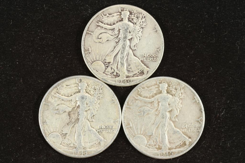 1940,1943 & 1945 WALKING LIBERTY HALF DOLLARS