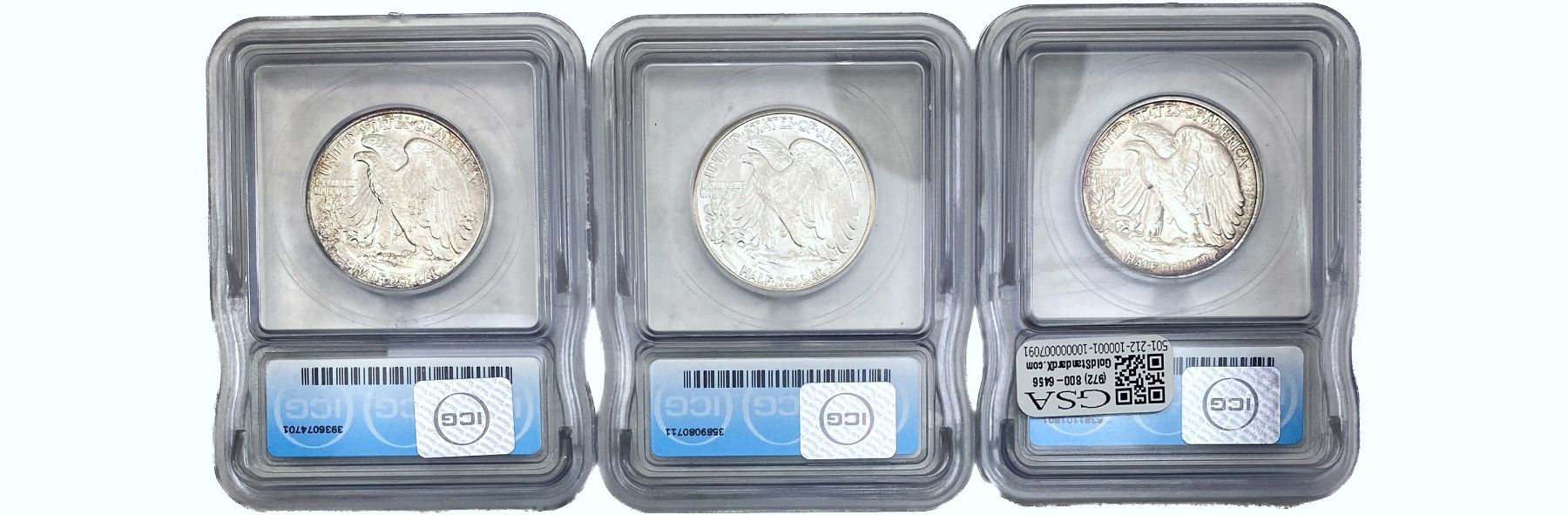 1940-1943 GEM BU Walking Lib Half Dollar[3 Coins] ICGS MS64/65