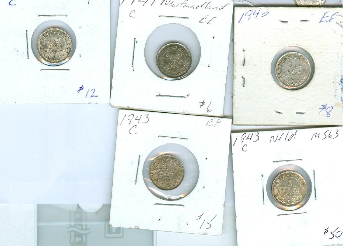 1940-1943c NFLD 5¢. Lot of 5 coins including, 1940, 1941c, 1