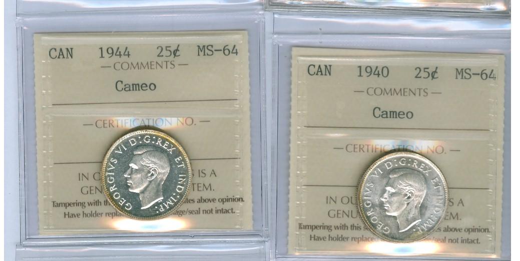 1940 & 1944 25¢. Lot of two coins both ICCS MS64 Cameo.