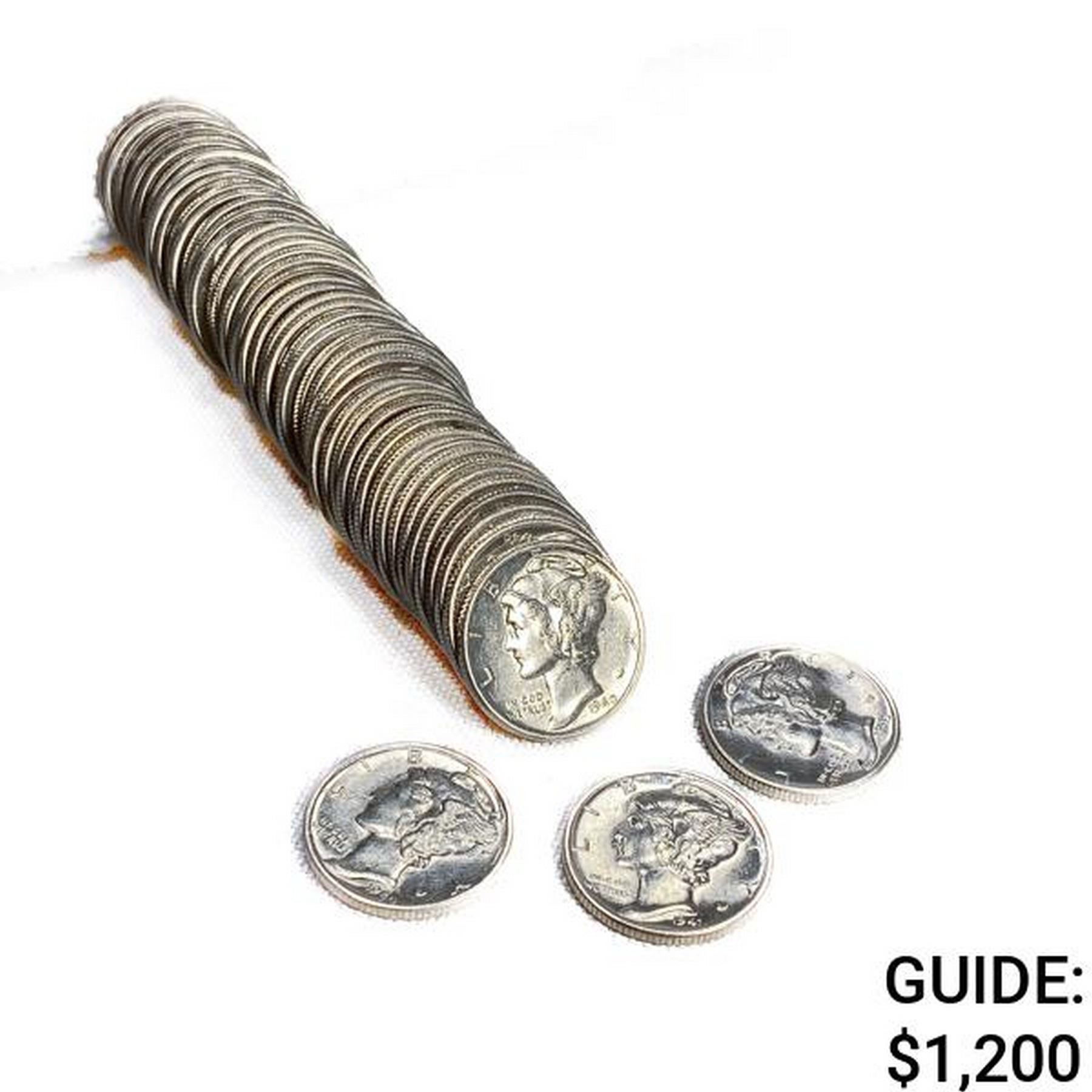 1940-1945 Mercury Silver Dime Roll GEM UNC (50 Co