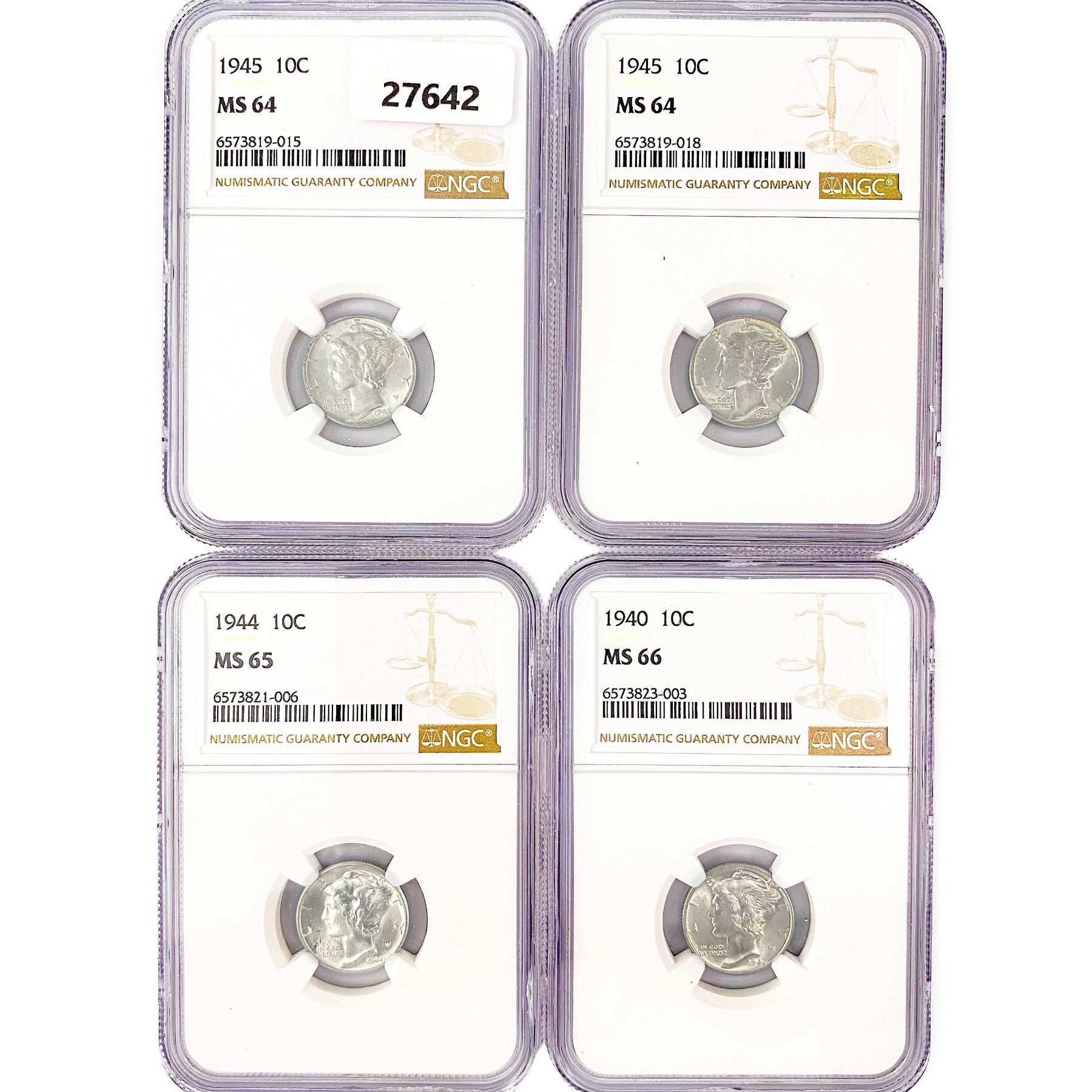 1940-1945 Set (4) Mercury Silver Dime NGC MS
