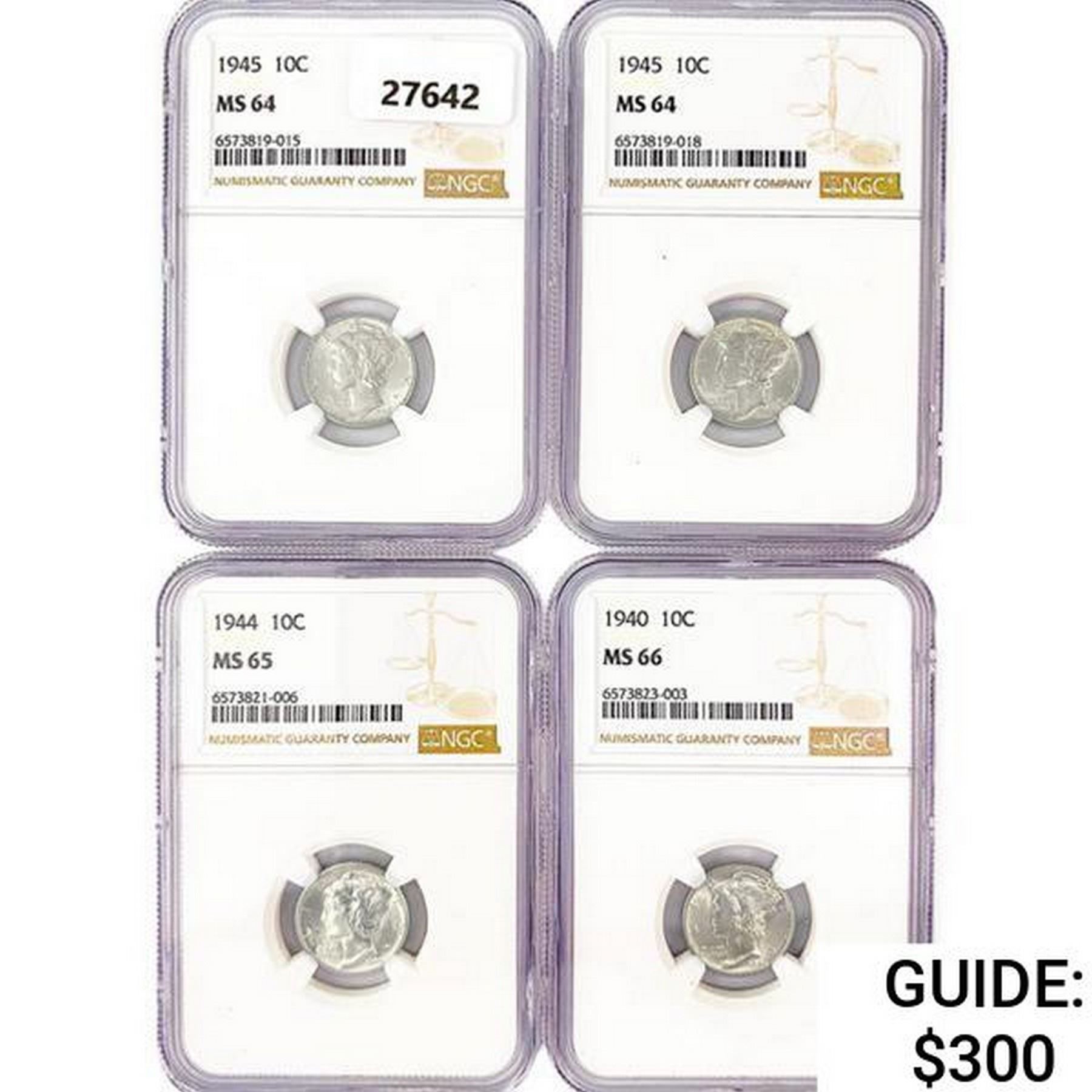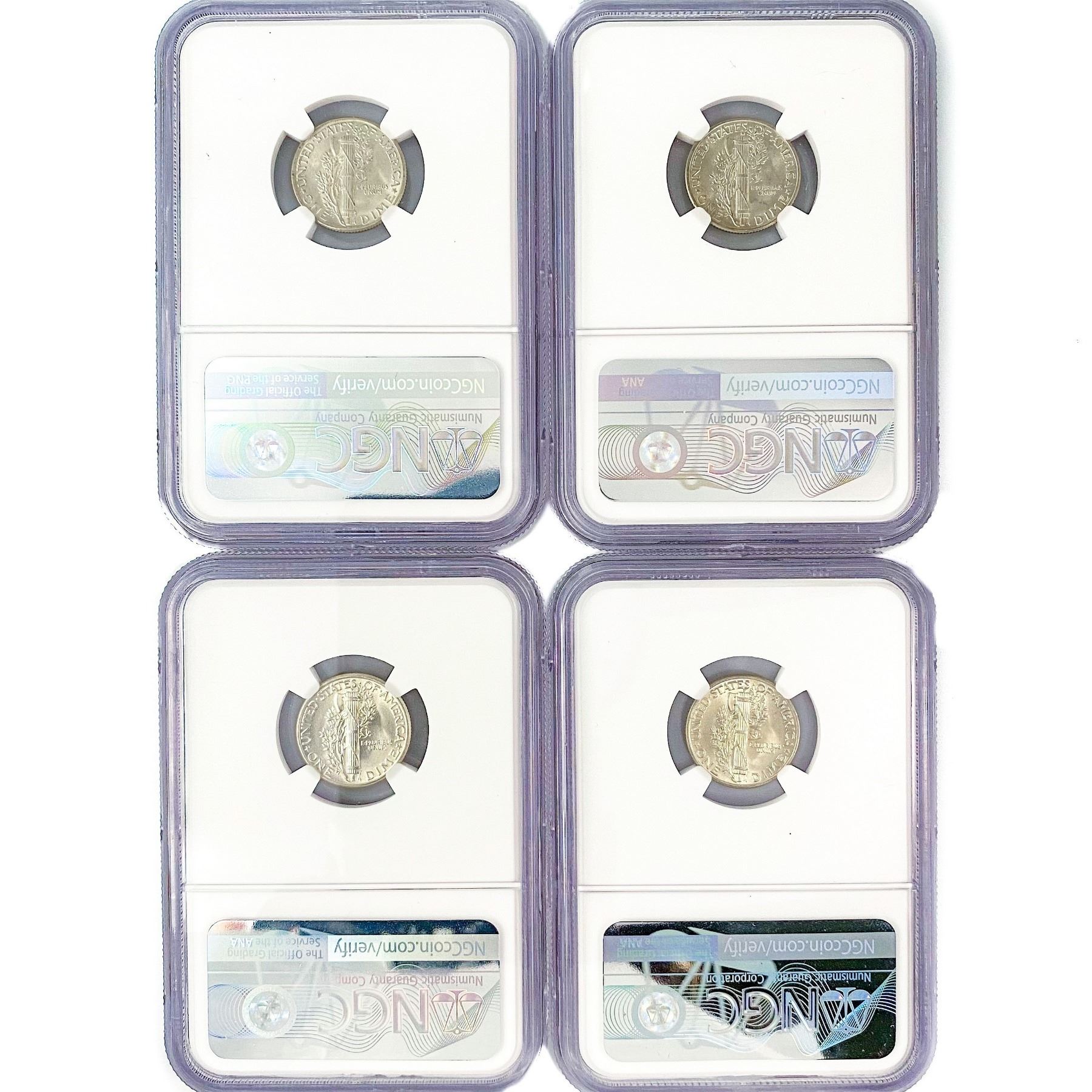 1940-1945 Set [4] Mercury Silver Dime NGC MS