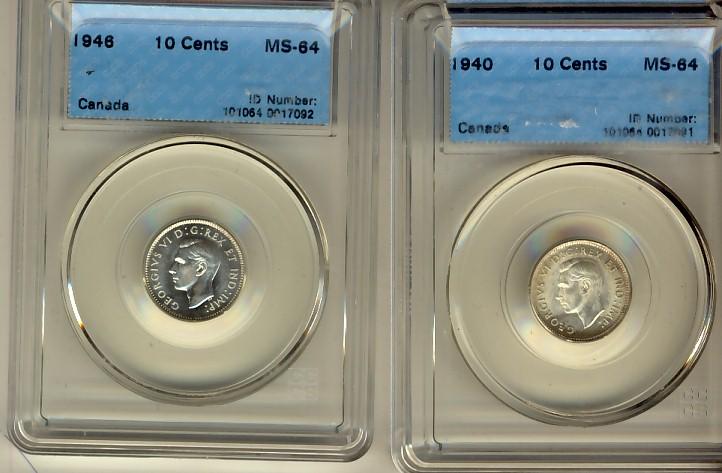 1940 & 1946 10¢ CCCS MS64. Lot of 4 coins.