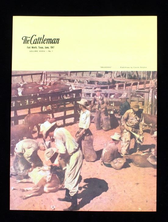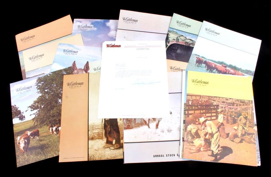 This is a collection of covers from The Cattleman magazine from the 1940's to 1950's. The covers were sent to the Circle Bar Ranch in Alcova, Wyoming in 1950 by the editor of the magazine. There are over 40 covers total. They all show good condition. Each one measures 8.5" x 11".
