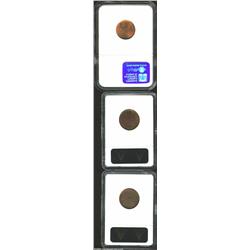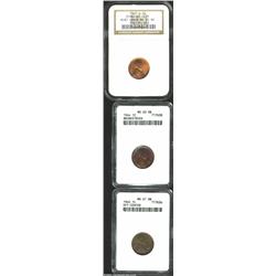 1940 1C Cent--Off Center--MS61 Red and Brown ANACS, the impression is about 5% off center at 11 o'clock, both sides display a somewhat muted appearance with flickers of original luster evident in a few of the more protected areas; 1944 Cent--Broadstruck--MS63 Red and Brown ANACS, both sides are a little distended from having been struck without a collar, the surfaces are toned in vivid crimson and purple shades; and a 1947-S Cent--Straight Clip--MS65 Red NGC, a tiny straight clip is seen along the obverse rim outside the final digit in the date, which is just barely discernible, this is a fully lustrous, orange-red Gem. 3 coins Important notice: We expect to be auctioning lots at the rate of 200-250 per hour. Sometimes eBay Premier live bid software cannot keep up with that pace, so we strongly recommend that you place a realistic proxy bid now as insurance to avoid disappointment. Also please note that all Heritage/CAA lots purchased through eBay Premier carry a 20% Buyer's Premium. Please make sure you read the Terms and Conditions.