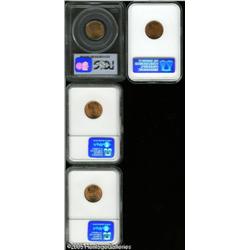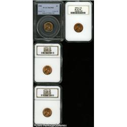 <B>1940 1C MS67 Red PCGS,</B></I> a magnificent apricot-gold piece; <B>1946 MS67 Red NGC,</B></I> an impressive obverse, a few minute flecks on the reverse; <B>1948 MS67 Red NGC,</B></I> an outstanding obverse, a pair of small marks on the reverse; and a <B>1949-D MS67 Red NGC,</B></I> deep orange color with hints of ruby iridescence along the borders.<BR><I>From The Kim Mitchell Collection, Part Two.</B></I> 4 Coins Lot:5542