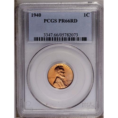 1940 1C PR66 Red PCGS. Sharply struck with deep, even 1940[1C] PR66 Red PCGS.