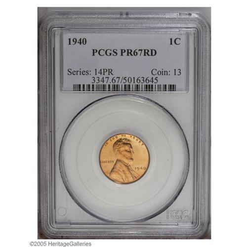 1940 1C PR67 Red PCGS. Flawlessly struck and pristine, 1940[1C] PR67 Red PCGS.
