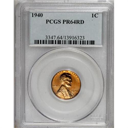 <B>1940 1C PR64 Red PCGS.</B></I> PCGS Population (463/708). NGC Census: (186/358). Mintage: 15,872. Numismedia Wsl. Price for NGC/PCGS coin in PR64: $100. (#3347)<BR><BR><B>Coin Engraver:</B> Victor D. Brenner<BR><BR><b>Shipping:</b> Coins & Currency (<a target="_blank" href="http://www.heritageauctions.com/common/shipping.php">view shipping information</a>)