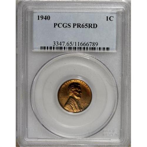 <B>1940 1C PR65 Red PCGS.</B></I> PCGS Population (493/219). NGC Census: (243/108). Mintage: 15,872. Numismedia Wsl. Price for NGC/PCGS coin in PR65: $144. (#3347)<BR><BR><B>Coin Engraver:</B> Victor D. Brenner<BR><BR><b>Shipping:</b> Coins & Currency (<a target="_blank" href="http://www.heritageauctions.com/common/shipping.php">view shipping information</a>\)