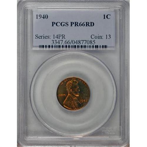 <B>1940 1C PR66 Red PCGS.</B></I> PCGS Population (208/10). NGC Census: (104/6). Mintage: 15,872. Numismedia Wsl. Price for NGC/PCGS coin in PR66: $310. (#3347)<BR><BR><B>Coin Engraver:</B> Victor D. Brenner<BR><BR><b>Shipping:</b> Coins & Currency (<a target="_blank" href="http://www.heritageauctions.com/common/shipping.php">view shipping information</a>)
