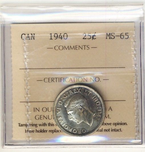 1940 25¢ ICCS MS65. Lovely Gem.