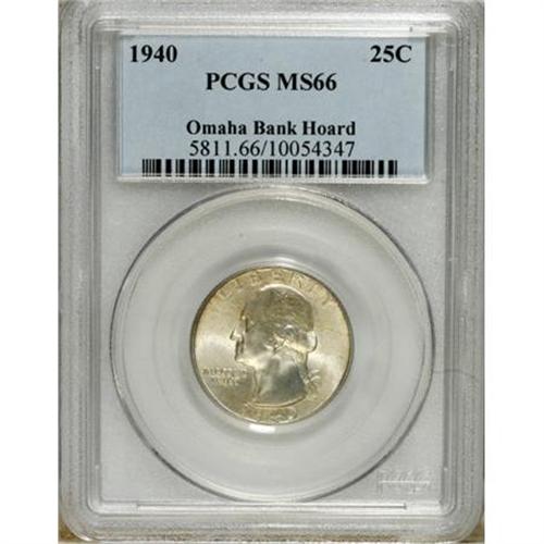 <B>1940 25C MS66 PCGS.</B></I> Ex: Omaha Bank Hoard. PCGS Population (394/71). NGC Census: (386/153). Mintage: 35,715,248. Numismedia Wsl. Price for NGC/PCGS coin in MS66: $100. (#5811)<BR><BR><b>Shipping:</b> Coins & Currency (<a target="_blank" href="http://www.heritageauctions.com/common/shipping.php">view shipping information</a>)