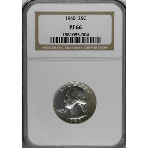<B>1940 25C PR66 NGC.</B></I> NGC Census: (422/175). PCGS Population (586/146). Mintage: 11,246. Numismedia Wsl. Price for NGC/PCGS coin in PR66: $252. (#5979)<BR><BR><B>Coin Engraver:</B> John Flanagan<BR><BR><b>Shipping:</b> Coins & Currency (<a target="_blank" href="http://www.heritageauctions.com/common/shipping.php">view shipping information</a>)