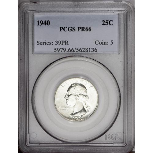 1940 25C PR66 PCGS. Crisply struck with bright, untone 1940[25C] PR66 PCGS.