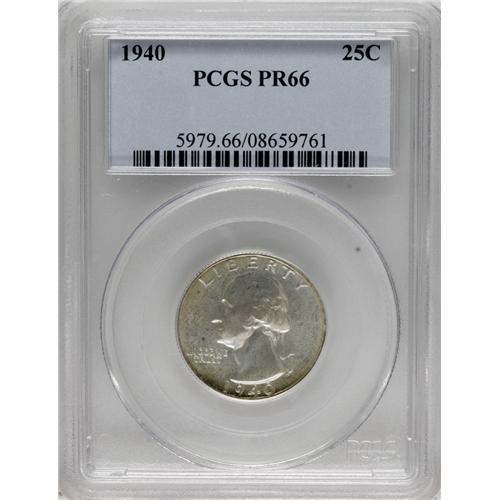 <B>1940 25C PR66 PCGS.</B></I> PCGS Population (587/147). NGC Census: (830/346). Mintage: 11,246. Numismedia Wsl. Price for NGC/PCGS coin in PR66: $260. (#5979)<BR><BR><b>Shipping:</b> Coins & Currency (<a target="_blank" href="http://www.heritageauctions.com/common/shipping.php">view shipping information</a>)