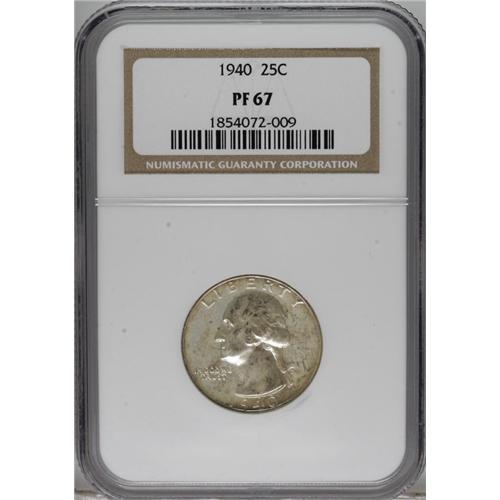 <B>1940 25C PR67 NGC.</B></I> NGC Census: (152/18). PCGS Population (145/2). Mintage: 11,246. Numismedia Wsl. Price: $440. (#5979)<BR><BR><b>Shipping:</b> Coins & Currency (<a target="_blank" href="http://www.heritageauctions.com/common/shipping.php">view shipping information</a>)