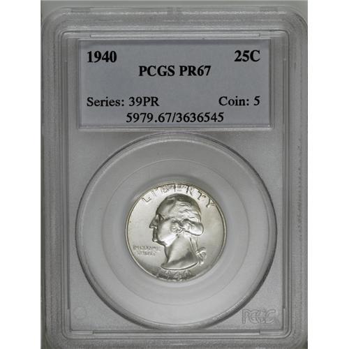 1940 25C PR67 PCGS. Mostly brilliant, although plum, g 1940[25C] PR67 PCGS.