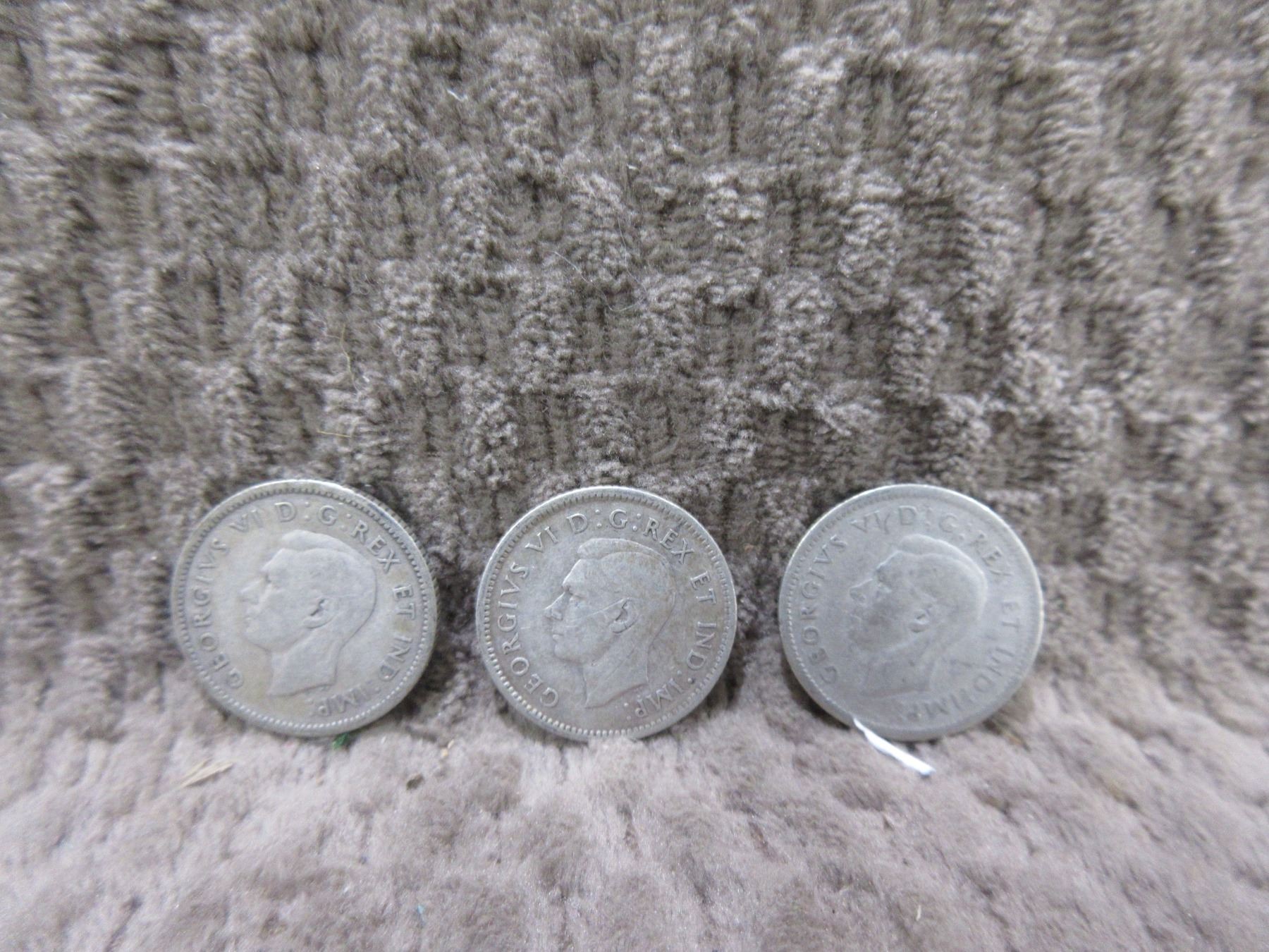 1940 - 3 Canadian 10 Cent Pieces - 800 Silver