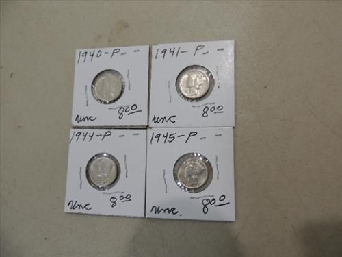 1940, 41, 44, 45 UNCIRCULATED MERCURY DIMES