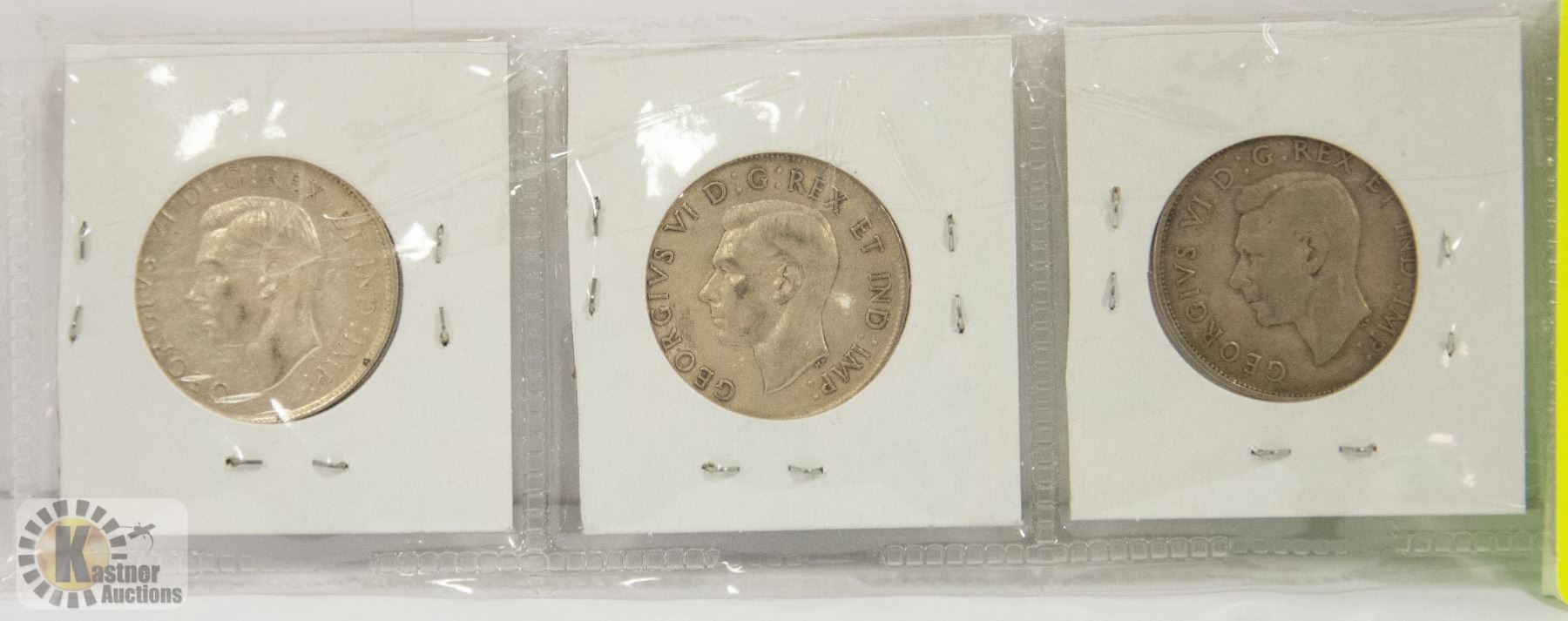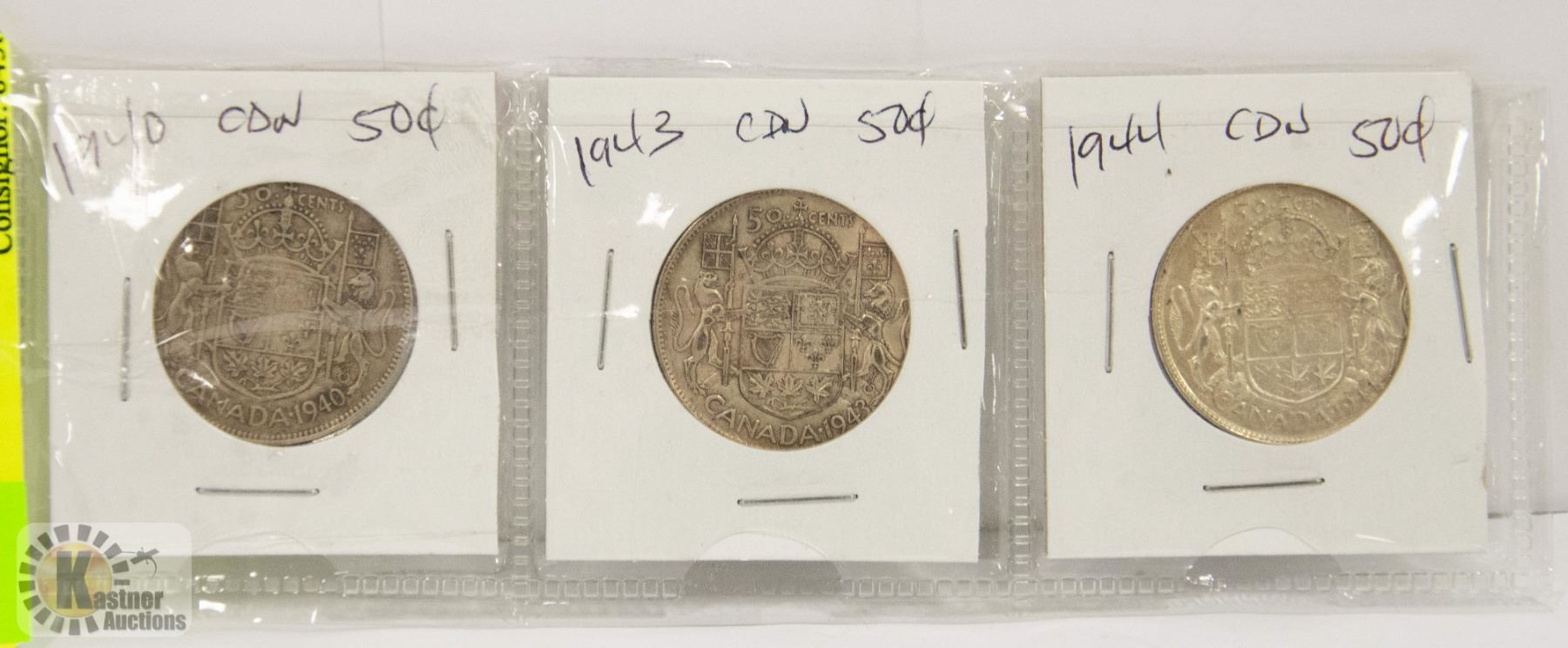 1940/43/44 CANADIAN SILVER 50 CENT COINS (3)