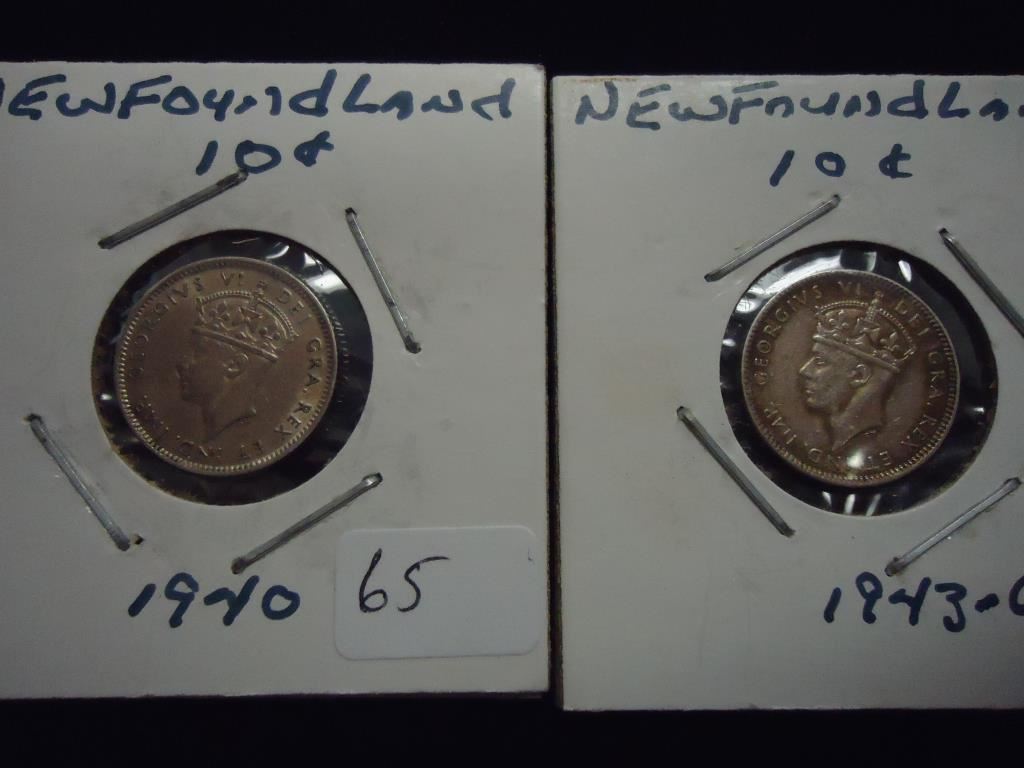 1940 & 43-C NEWFOUNDLAND SILVER 10 CENTS