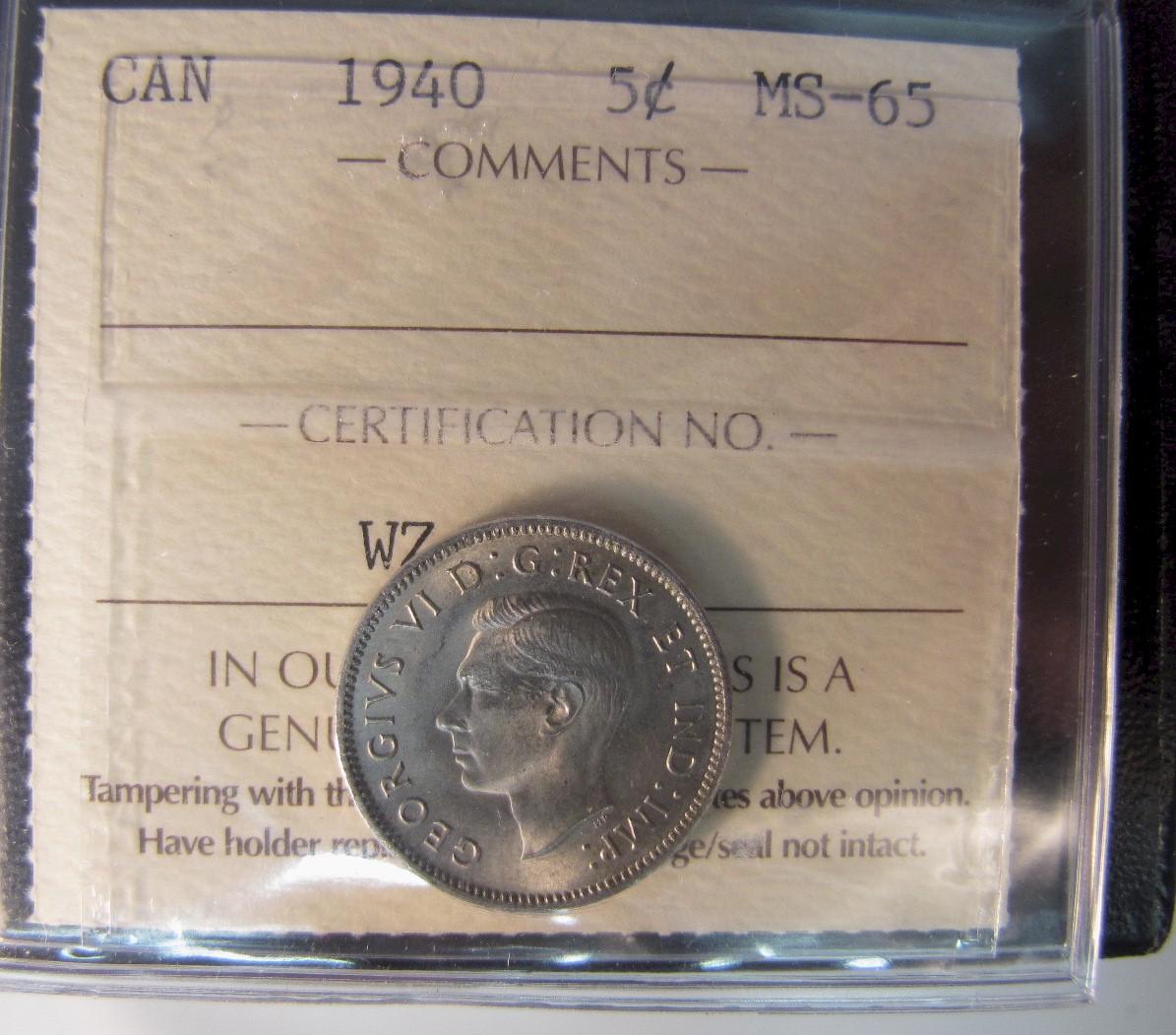 1940 5¢ ICCS MS65. Well struck and lustrous.