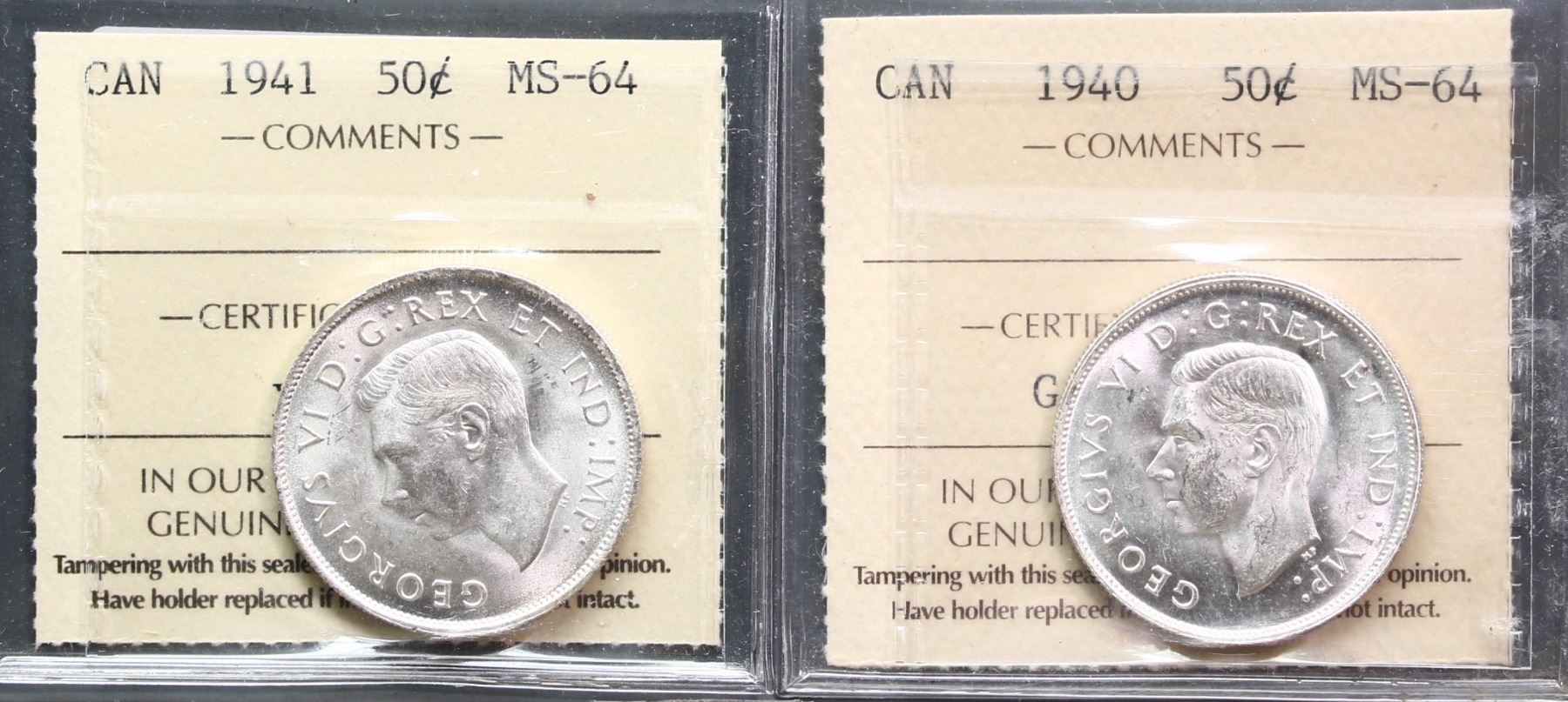 1940 50¢, 1941 both ICCS Choice Mint State-64.
