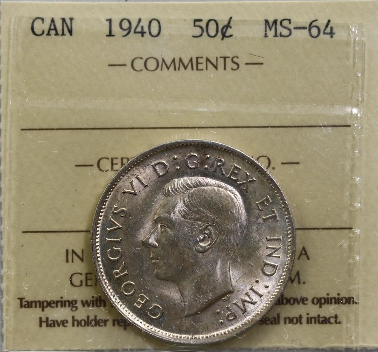 1940 50¢ ICCS Choice Mint State-64