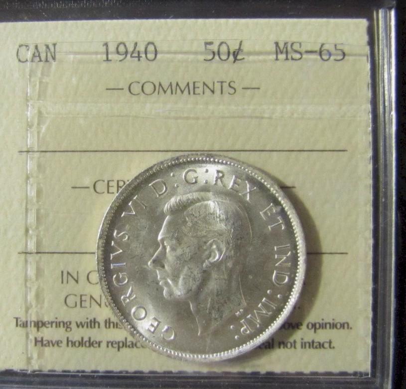 1940 50¢ ICCS MS65. Full white and lustrous.