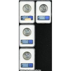 <B>1940<50C> MS66 NGC,</B></I> pastel-yellow colored with an above average strike and typical luster; <B>1941 MS66 NGC,</B></I> well struck throughout with lovingly preserved surfaces and traces of color around the edges; <B>1942 MS66 NGC,</B></I> effulgent with a light sprinkling of maroon coloration around the obverse and reverse peripheries; and a <B>1943 MS66 NGC,</B></I> vivid apricot-amber colored on the obverse with a mostly brilliant reverse.<BR><I>From The Dr. Frank Lanza Collection of Walking Liberty Half Dollars.</B></I> 4 coins <BR><BR><B>Important notice:</B> Heritage usually auctions material at the rate of 200-250 lots per hour. On some occasions eBay Live bid software or the Internet may not be able to keep up with the pace of the auction. We recommend placing a realistic absentee bid now as insurance to avoid disappointment. Occasionally the auctioneer may eliminate or reject an eBay Live bid, and the auctioneer may also reopen a lot after the close of the eBay live bidding (usually because we missed an audience bid), and may reject your bid even if it shows you as the winning bidder. By bidding via eBay Live, you agree that Heritage may award the lot to another bidder at its sole discretion under the circumstances described above or any other reasonable circumstances. Since eBay bids are not shown to us until we open the lot on the floor, we treat those bids just like floor bids. In most cases the floor responds before the eBay bid is presented to us, due to Internet lag time, so for consistency we have made it a policy that floor bids are always considered first over tie eBay live bids. Also please note that all Heritage lots purchased through eBay Live carry a 20% Buyer's Premium. Please make sure you read the Terms and Conditions before you bid. </span></font></tr></table></td></tr></table>
