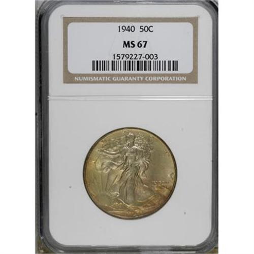 <B>1940 50C MS67 NGC.</B></I> Rich orange-gold toning embraces each side of this subtly lustrous and attractive Superb Gem. Exceptional preservation with perceptible definition on Liberty's hands.<BR><BR><B>Coin Engraver:</B> Adolph A. Weinman<BR><BR><b>Shipping:</b> Coins & Currency (<a target="_blank" href="http://www.heritageauctions.com/common/shipping.php">view shipping information</a>)