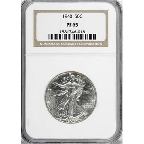 <B>1940 50C PR65 NGC.</B></I> A gorgeous and boldly struck Gem, untoned save for hints of olive toning and a daub of milky patina to the right of Liberty's arm. In 1940, the mintage of proof halves reached five figures for the first time, and later issues never fell below that figure.<BR><BR><B>Coin Engraver:</B> Adolph A. Weinman<BR><BR><b>Shipping:</b> Coins & Currency (<a target="_blank" href="http://www.heritageauctions.com/common/shipping.php">view shipping information</a>)