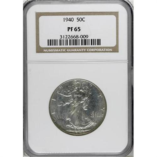<B>1940 50C PR65 NGC.</B></I> . NGC Census: (552/5317). PCGS Population (967/1048). Mintage: 11,279. Numismedia Wsl. Price for NGC/PCGS coin in PR65: $630. (#6640)<BR><BR><B>Coin Engraver:</B> Adolph A. Weinman<BR><BR><b>Shipping:</b> Coins & Currency (<a target="_blank" href="http://www.heritageauctions.com/common/shipping.php">view shipping information</a>)